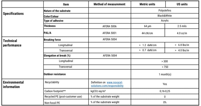 Retire la película de la superficie aprobada dentro del plazo de un año desde la fecha de laminación. Tenga en cuenta la garantía de desempeño en exteriores mencionada en la tabla de la página 1, evitando la presencia de agua estancada y manteniendo una temperatura entre 10 y 40°C. Novacel recomienda que la remoción de la película sea realizada por un profesional.